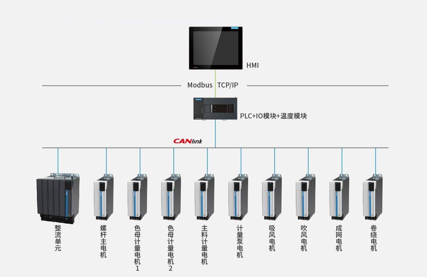 相比原來單傳方案,產線整套電氣采用共直流母線,書本式的變頻器方案,整套低壓電器降本20%